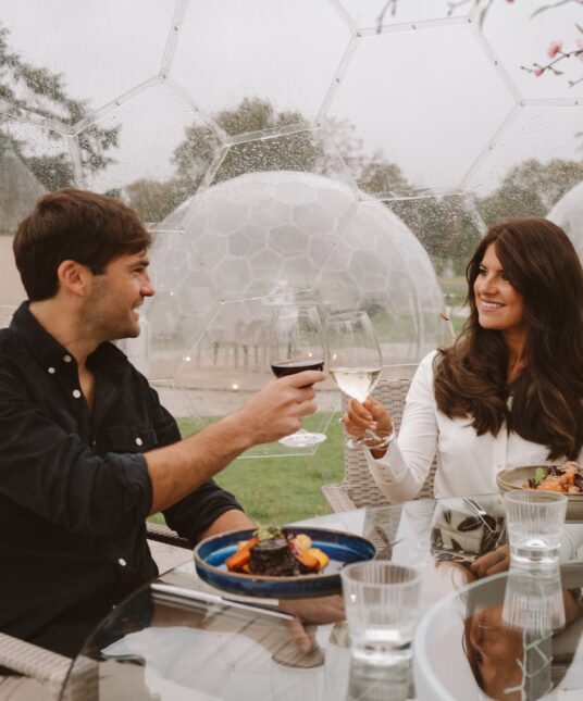 Our private dining domes have been named after the stars and moon and have stunning views across the estate and golf course by day, and under starry skies by night.