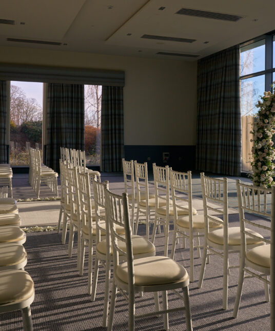Our larger space which is perfect for bigger gatherings, 220 for lunch or dinner, or 180 for a dinner dance.